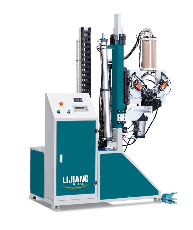 The machine can automatically achieve actions of drilling holes automatically in the insulating glass spacing frames, filling desiccant and sealant. The control system adopts Germany Siemens, so the