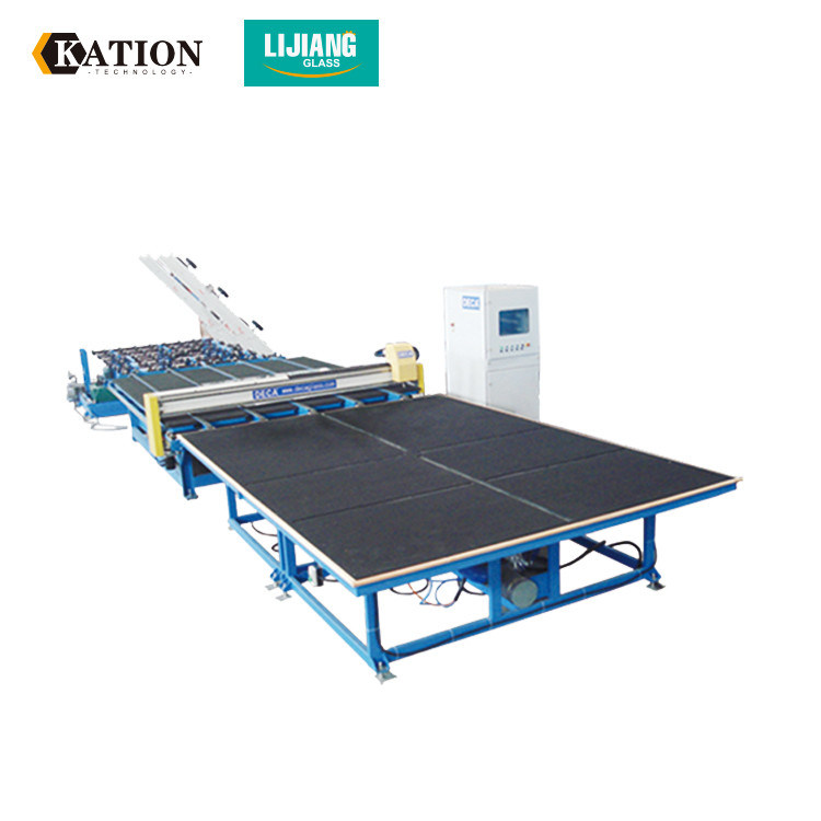 Automatic glass cutting machineis to convey the cut glass by conveying belt to worktable, automatically input the position of glass through photoelectric scanning system, and then the cutting head with diamond wheel on the cutter holder moves along X and Y directions respectively by program control, cut the sheet. CNC motion controller is used in the control part of the machine, and advanced AC servo motor is used in the drive part.