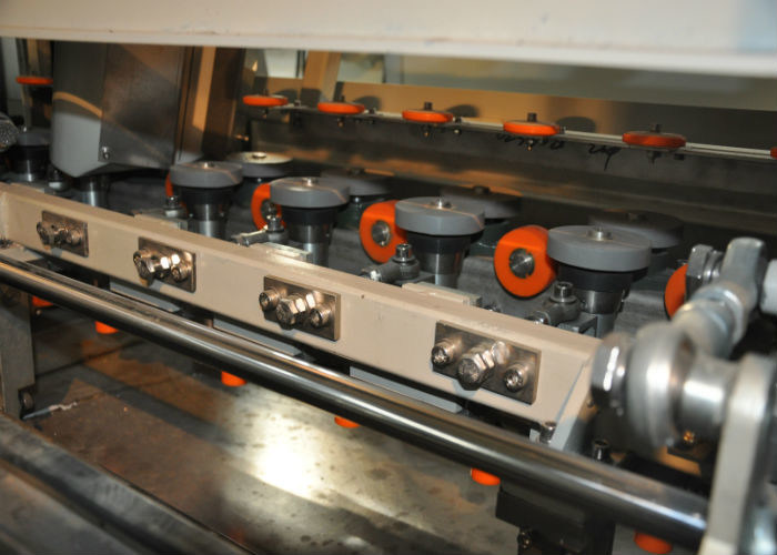 5, The front and back side squeeze wheel are all actively moved and convey. No mater the glass size is big /small or thickness different(8mm) , it all guarantee the glass pass through smoothly.(Same like LISEC)