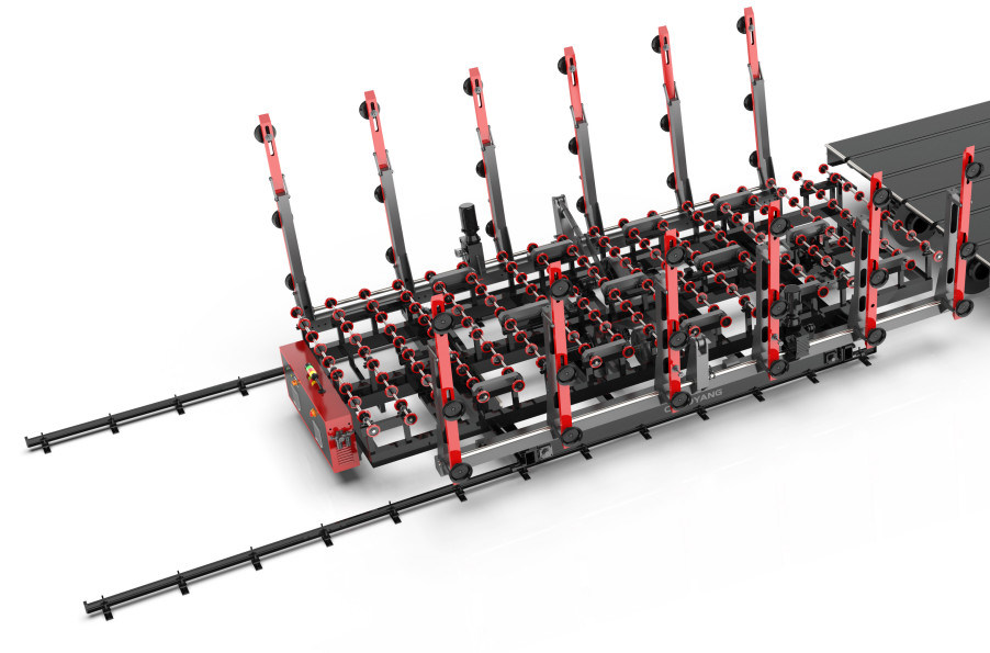 It is mainly used for automatic glass loading. After putting the glass in the designated position and giving the signal of loading, the big arm turns up about 95 degrees through the overturning mechanism, and the whole machine starts to move forward. When the induction device on the small