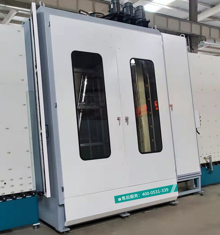 - Stainless steel washer with 8 ( 6 ) brushes, soft brushes from MONFORTS of Germany, hard brushes automatically open when Low-E glass input.
