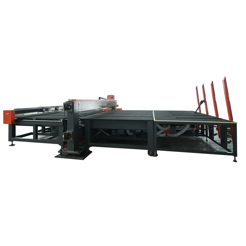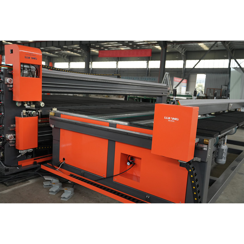 The machine only needs to input the required glass width into the touch screen, press the OK button, and the positioning block will automatically move to the set position. Manually assist the glass to the positioning block and press the cutting button to start cutting. At this time, a glass cutter on the upper and lower sides moves against the glass and cuts the glass (Y direction). After cutting, the glass cutter returns to the original point, and then the cutting and slicing of the laminated glass are completed through roller rolling and peeling, baking and tearing, and blade film breaking.