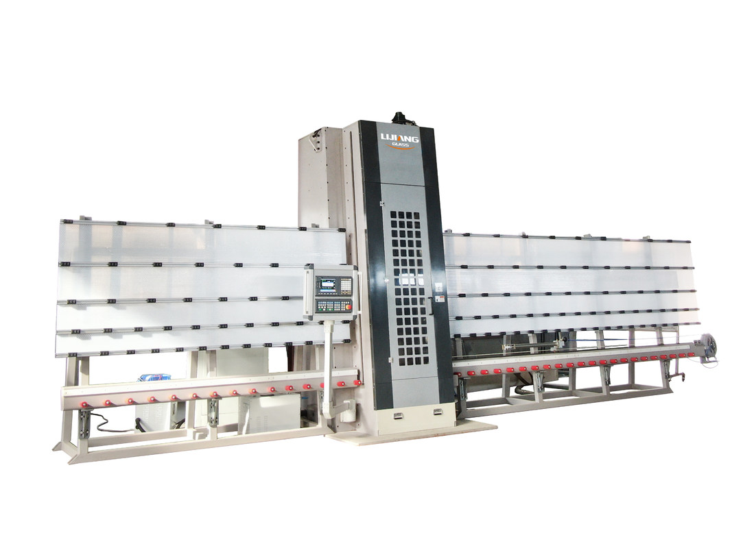 The machine can automatically process complex drilling and milling functions on large flat glass. When the glass was loaded on the feeding rack, the machine begins to execute the prepared program on drilling, milling, etc.